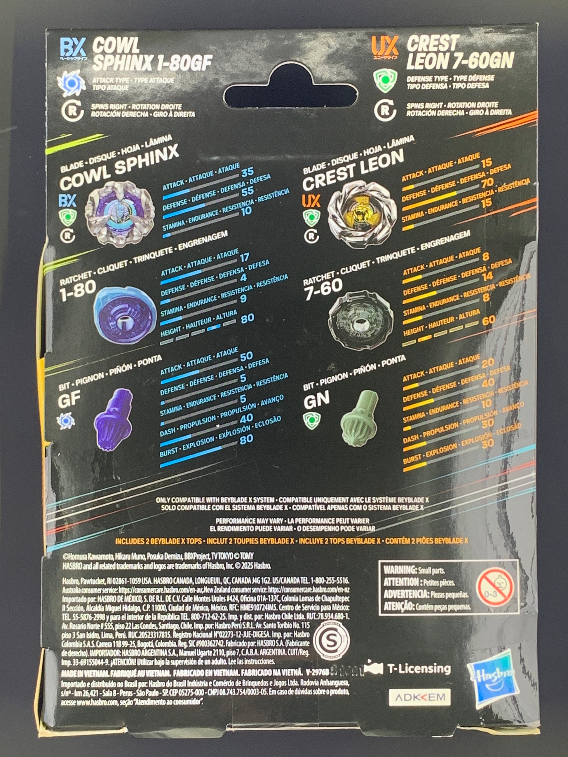 Hasbro Beyblade X Sphinx Cowl 1-80GF and Crest Leon 7-60GN Dual Pack